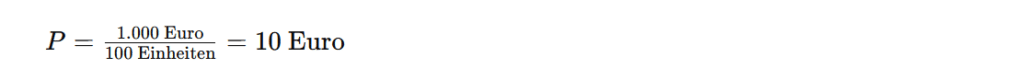 Angenommen, die Gesamtkosten für die Herstellung und den Vertrieb eines Produkts betragen 1.000 Euro. Das Unternehmen verkauft 100 Einheiten im PWYW-Modell. Der Break-Even-Preis beträgt also: