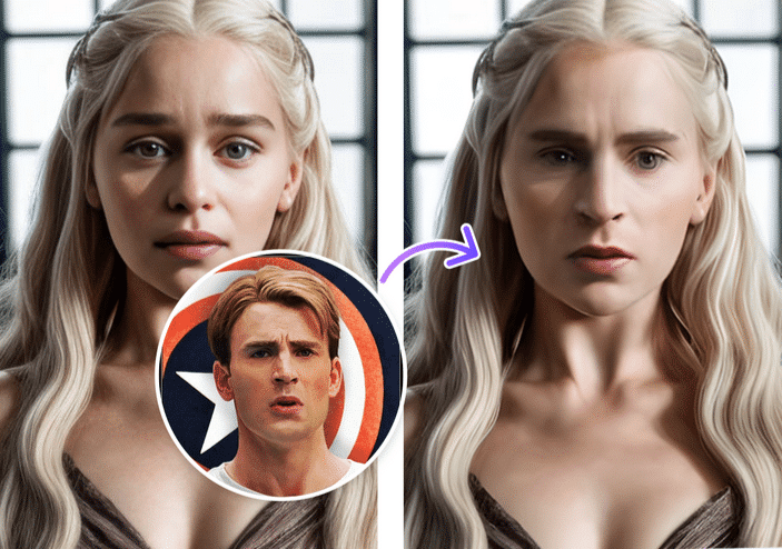 Face-Swapping ist eine Technik, bei der das Gesicht einer Person in einem Foto durch das einer anderen ersetzt wird. Es wird oft in der Fotobearbeitung verwendet, um witzige, kreative oder sogar täuschend echte Bilder zu erstellen. Ob für Thumbnails, Social Media Posts oder einfach zum Spaß – Face-Swaps sind eine tolle Möglichkeit, Bilder aufzupeppen.